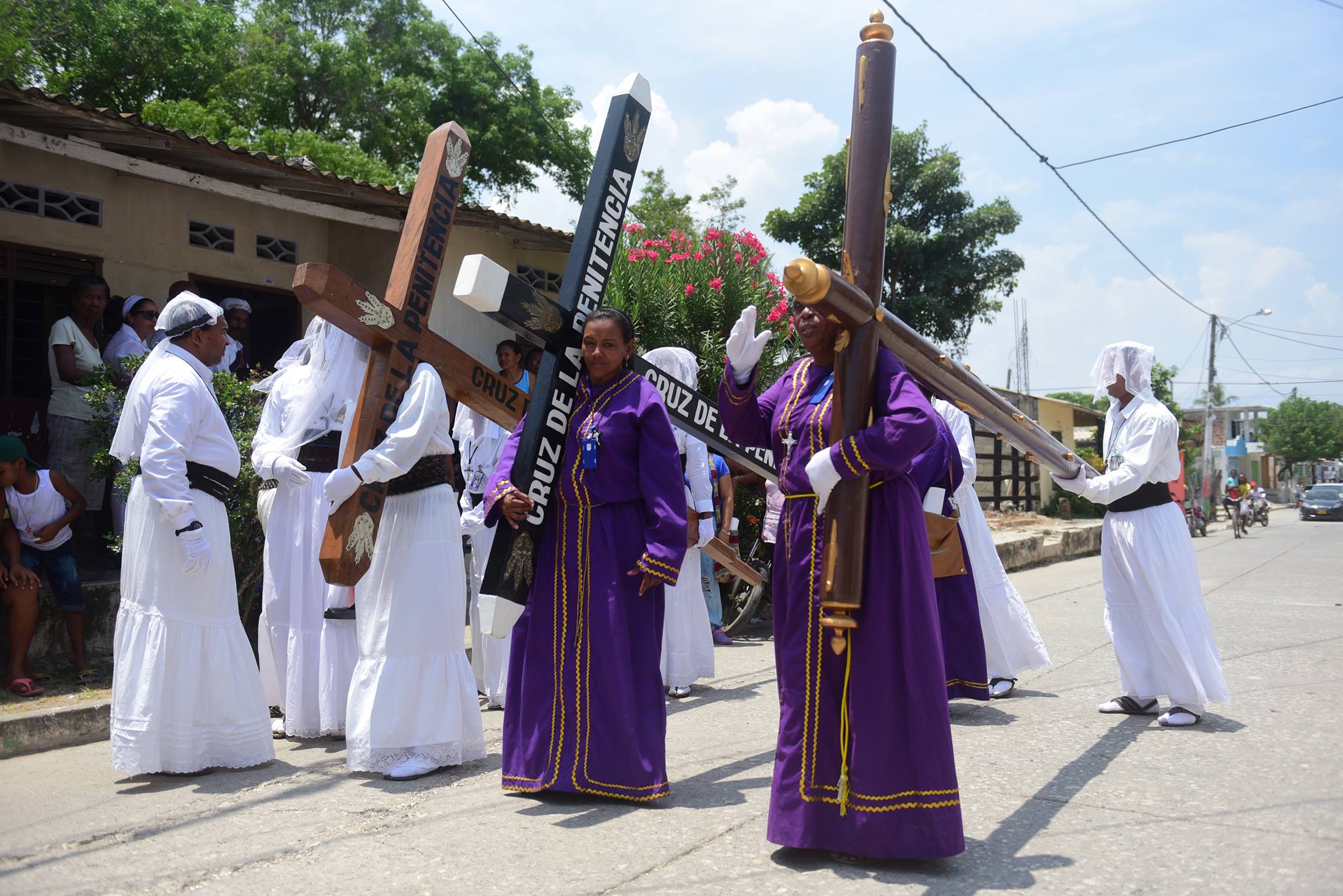 De la casa de uno de los últimos nazarenos mayores ya difuntos, Pedro Lucío Ayala, parte una solemne procesión en donde se llevan tres cruces hacia la iglesia. Dos cruces muy pesadas, llamadas las cruces de la penitencia, son cargadas por algunos nazarenos que han cometido pecados en sus vidas, y quieren ofrecer ese sacrificio a Dios como reconciliación. Hay una tercera cruz tambien pesada, la cual tambien es cargada por algunos nazarenos y es la cruz que carga la imagen del Nazareno en la procesión de "Jesús con la cruz a cuestas", a media noche.
